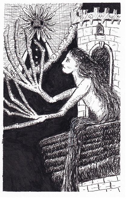 I create black and white drawings of figures caught in vivid, uncanny situations. Each piece is a fragment of a larger mystery, and taps into our hardwired attraction to storytelling.